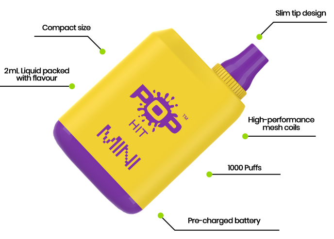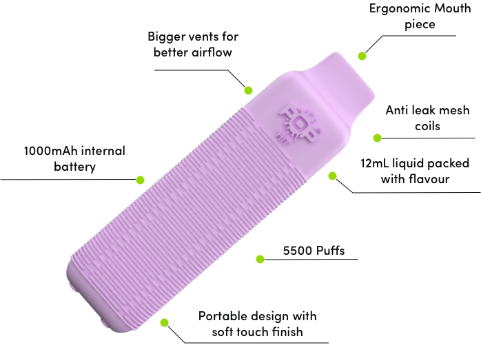 Enjoy 1000 puffs of delicious flavours as Pop Box Mini brings your 2mL of premium e-juice and the goodness of mesh coils, giving you a wonderful vaping experience with every puff you inhale. The device comes pre-charged with a 500 mAh battery, so you don't have to worry about charging and recharging. Pick from a wide range of 15 flavours.